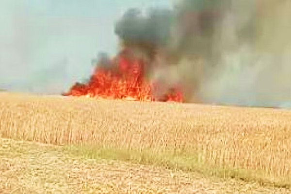 गांव के भरत सिंह के खेत में थ्रेसर से गेहूं की मड़ाई हो रही थी। इसी दौरान थ्रेसर में गेहूं के डंठल फंस गए। अचानक थ्रेसर के चेंबर से आग की लपटें निकल कर खेत में जा गिरी। थ्रेसिंग करा रहे मौजूद लोग जैसे ही खेतों की तरफ लपके लकिन आग तेजी से फैलनी शुरू हो गई।
