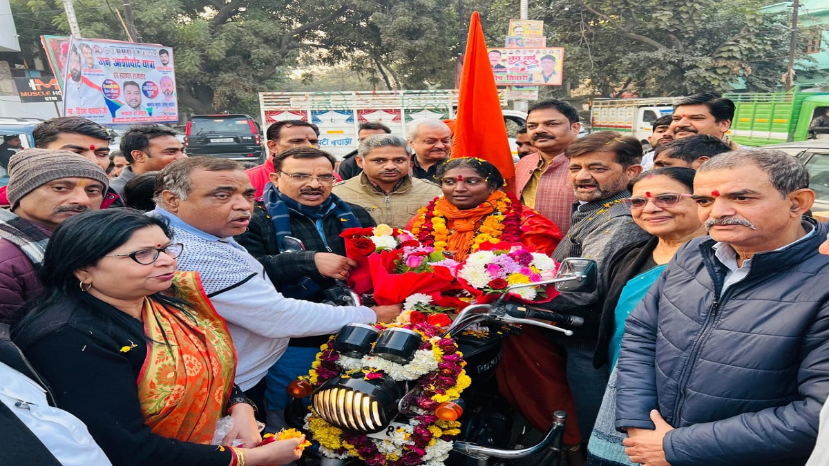 कानपुर। भारतीय संस्कृति के प्रचार-प्रसार और महाकुंभ 2025 को जन-जन तक पहुंचाने के उद्देश्य से निकलीं राज लक्ष्मी मंडा उर्फ बुलेट रानी शनिवार को शहर पहुंचीं। कानपुर पहुंचने पर बुलेट रानी का भव्य स्वागत किया गया। भाजपा के कानपुर बुंदेलखंड क्षेत्र कार्यालय पर क्षेत्रीय अध्यक्ष प्रकाश पाल के नेतृत्व में कार्यकर्ताओं ने पुष्पवर्षा करते हुए बुलेट रानी का स्वागत किया।