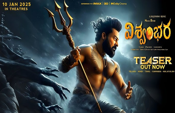 मेगास्टार ने आज, यानि 12 अक्टूबर को अपनी आगामी एक्शन फिल्म विश्वम्भर का धांसू टीजर जारी किया है। टीजर में दमदार वीएफएक्स और एमएम कीरावनी के बैकग्राउंड म्यूजिक झलक भी दिखने को मिली है।