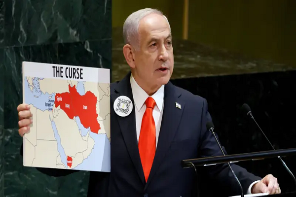 और फिर इसराइली पीएम नेतन्याहू ने शुक्रवार को न्यूयॉर्क में संयुक्त राष्ट्र महासभा को पूर्ण रूप से संबोधित किया।