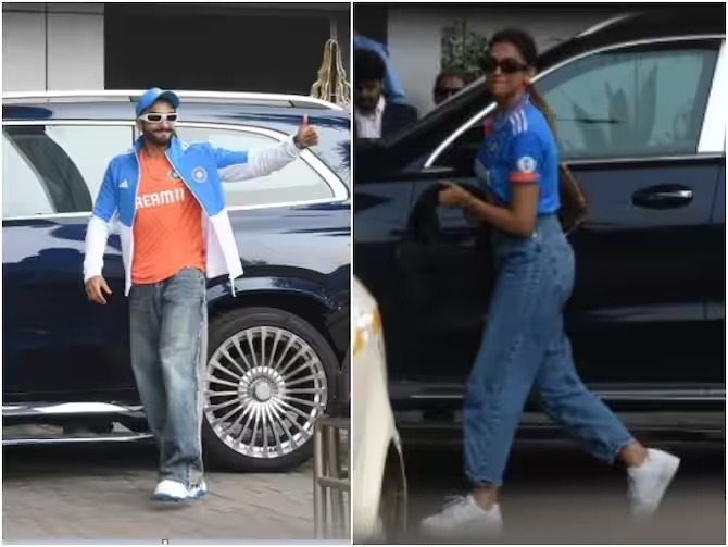बॉलीवुड के सुपर हॉट कपल दीपिका पादुकोण और रणवीर सिंह को भी मुंबई एयरपोर्ट पर स्पॉट किया गया। दोनों सितारे टीम इंडिया की जर्सी पहने अहमदाबाद के लिए रवाना हो चुके हैं। इनके अलावा कई सारे सितारे मैच देखने के लिए अहमदाबाद के रवाना भी हो चुके हैं।