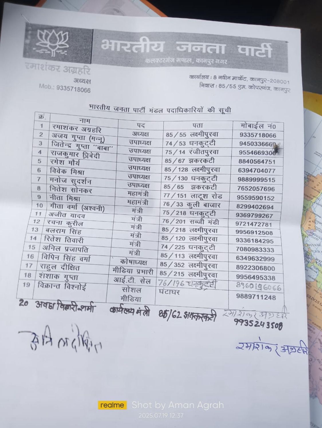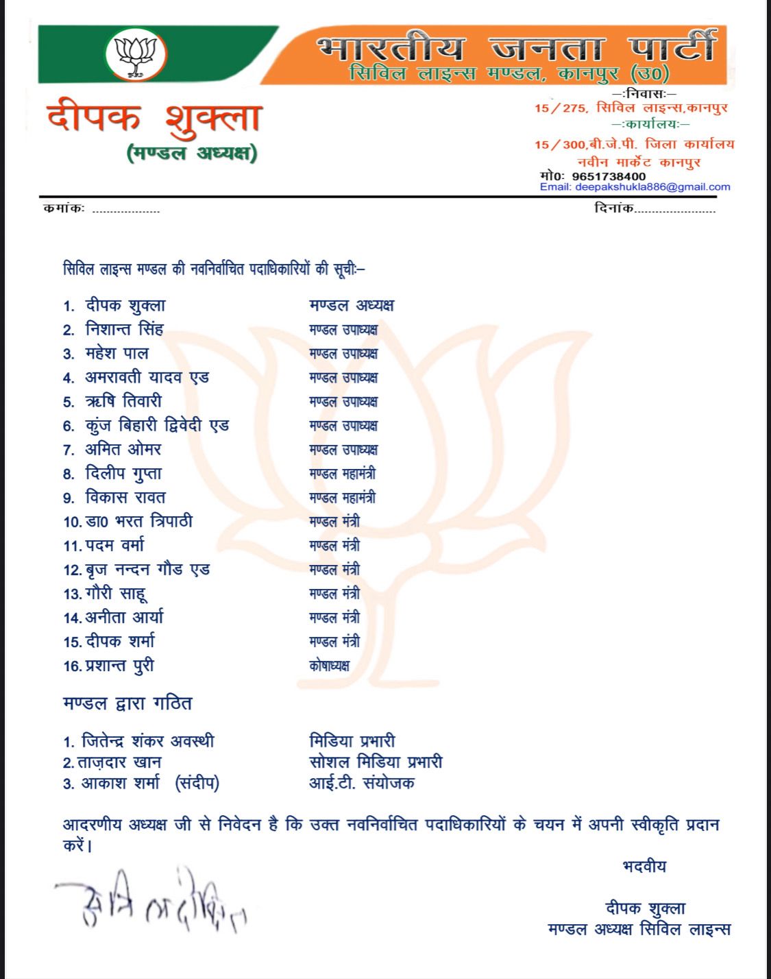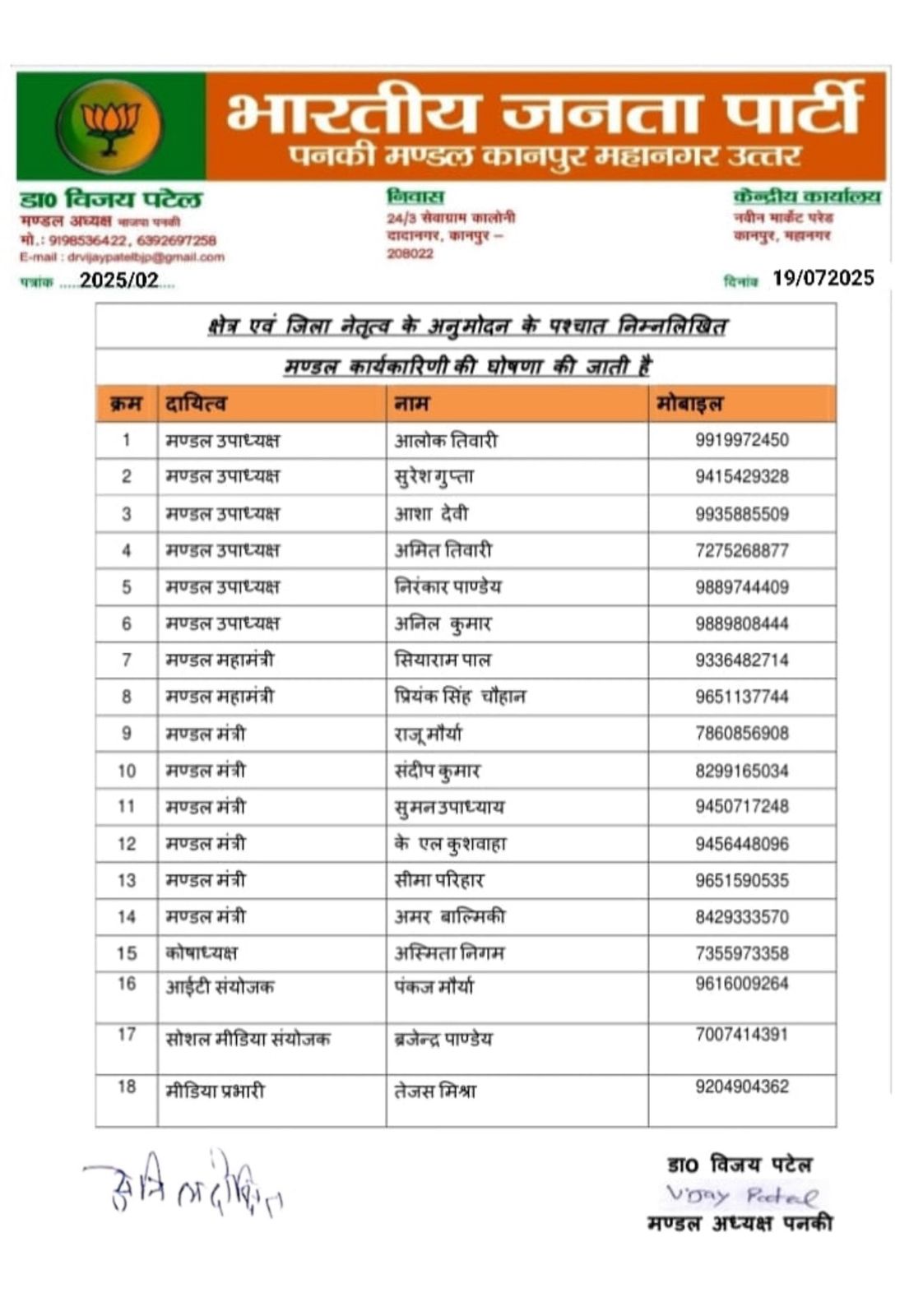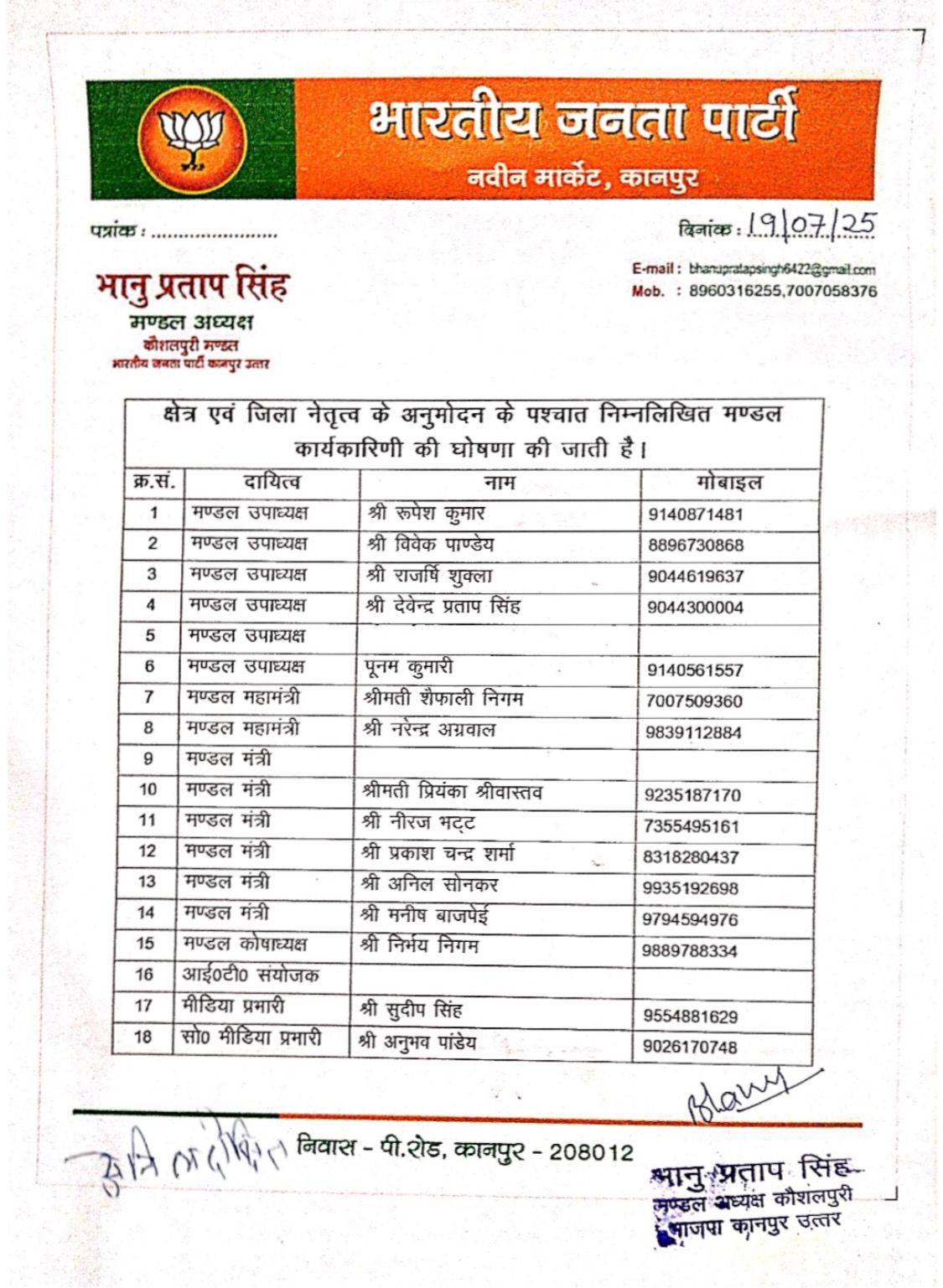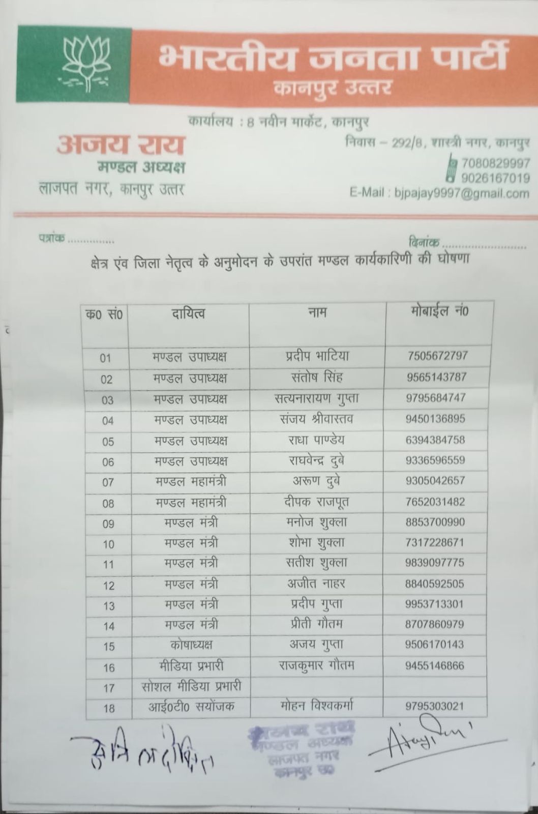 कानपुर: भाजपा ने उत्तर के 10 मंडलों की कमेटियां की घोषित, देखें लिस्ट