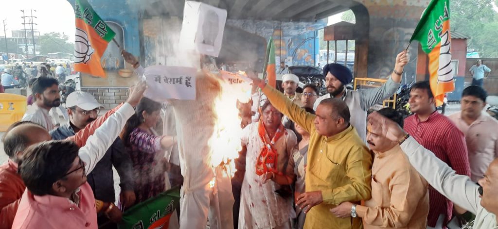 वहीं, परेड चौराहे पर जिला अध्यक्ष दीपू पांडे के नेतृत्व में महिला मोर्चा जिला अध्यक्ष सरोज सिंह ने बिहार के सीएम नीतीश कुमार का पुतला जलाया। जिला अध्यक्ष दीपू पांडे ने कहा कि विधानसभा में महिलाओं के खिलाफ अभद्र एवं अश्लील भाषा का उपयोग किया है इससे पूरे देश में संपूर्ण महिला समाज को अपमानित किया है। मुख्यमंत्री के इस बयान पर उनकी पार्टी के विधायक मेज थपथपा कर हंस रहे थे। सरोज सिंह ने कहा कि हमारे देश में आदिकाल से नारी को शक्ति एवं श्रद्धा का केंद्र माना जाता है। दोनों ही जगह पुष्पा तिवारी, वंदना गुप्ता मनीषा मिश्रा, सुनीता शुक्ला, मनीष त्रिपाठी व स्नेह लता दीक्षित, गुंजन शर्मा, सीमा तिवारी, पूजा चतुर्वेदी, सुधा सिंह, अनिता सोनी, संध्या गौतम, नर्मदा पांडे, लक्ष्मी श्रीवास्तव, सुमन जायसवाल, मंजू कटियार आदि रहे।