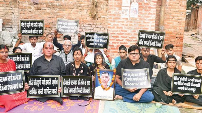 न्यूज़लिंक हिंदी। चकेरी के किसान बाबू सिंह यादव की आत्महत्या के मामले में उनकी बेटियों ने न्याय संघर्ष समिति के पदाधिकारियों के साथ काले वस्त्र पहनकर काली दीपावली मनाने का संकल्प लिया। बेटियों ने मां और अन्य परिजनों के साथ 62 दिन से फरार आरोपियों की गिरफ्तारी के साथ न्याय की मांग की।