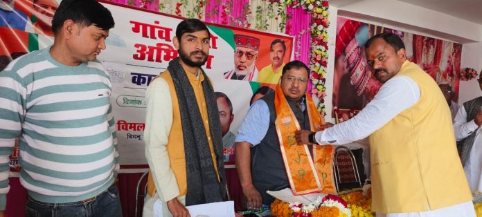 न्यूज़लिंक हिंदी। आज भारतीय जनता पार्टी कानपुर ग्रामीण की बिधनू मंडल की गांव चलो अभियान के तहत विमला गेस्ट हाउस में मंडल कार्यशाला का आयोजन किया गया। कार्यक्रम की शुरुआत मुख्य अतिथि कानपुर ग्रामीण के जिला अध्यक्ष दिनेश सिंह कुशवाहा के द्वारा डॉक्टर श्यामा प्रसाद मुखर्जी एवं दीनदयाल उपाध्याय जी की प्रतिमा पर पुष्पांजलि अर्पित कर की गई।