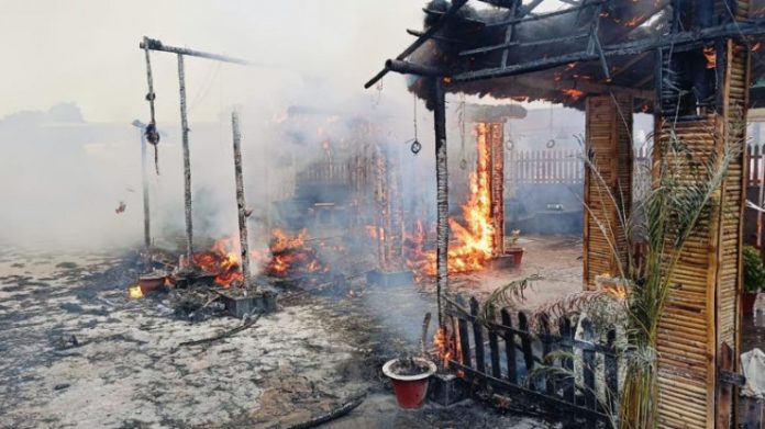 गैजेंस क्लब में टाप फ्लोर बने टपरी में अज्ञात कारणों से लगी आग। आग लगने से गैजेंस क्लब परिसर में हड़कंप मच गया।