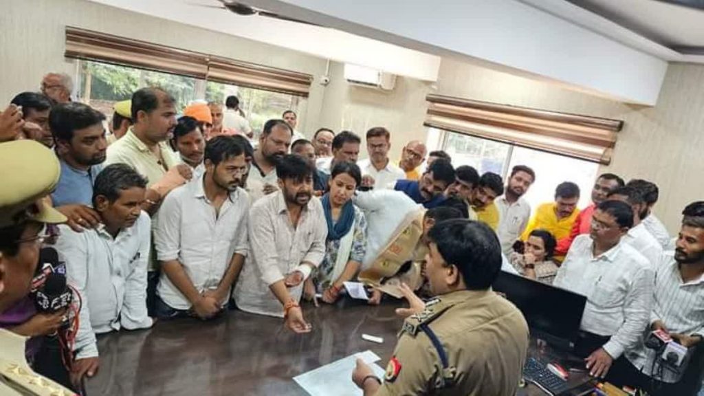 मामले में बीजेपी भी दो धड़ों में बंटी हुई दिखाई दी. शुक्रवार दोपहर बड़ी संख्या में बीजेपी के कार्यकर्ता, पार्षद सौम्या शुक्ला के साथ पुलिस कार्यालय पहुंचे, जहां जॉइंट पुलिस कमिश्नर आनंद प्रकाश तिवारी के कार्यालय जाकर पहले मामले में निष्पक्ष कार्रवाई की मांग की. बीजेपी नेता अंकित शुक्ला की पार्षद पत्नी सौम्या शुक्ला ने मामले पर कहा कि उनके पति पर लगे सभी आरोप झूठे हैं. पूरी घटना को धार्मिक रूप देकर गलत तरह से प्रसारित किया जा रहा है, जबकि उनके साथ बदनीयती और बदसलूकी की गई है. साथ ही पीड़ित व्यापारी अमोलदीप सिंह को घटना के समय शराब के नशे में भी बताया.