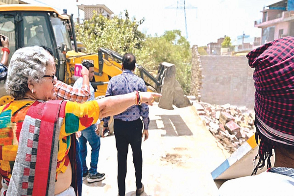 उन्होंने बुलडोजर बुलाकर तत्काल अतिक्रमण स्वयं खड़े होकर गिरवाया। इस दौरान क्षेत्र के कई लोग विरोध पर उतर आए। जिसको प्रवर्तन दल से लाठी पटककर खदेड़ दिया। महापौर ने बताया कि चतुर्वेदी बिल्डिंग से लेकर गोल्डन आर्मी पब्लिक स्कूल तक करीब आधा किलोमीटर पर लोगों ने कच्चे पक्के निर्माण करा रखे थे।