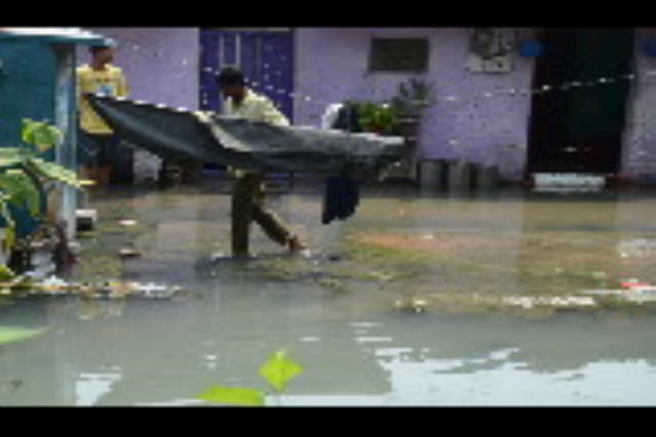 कानपुर के निरालानगर डब्ल्यू ब्लाॅक में नहरिया ओवरफ्लो होने से तीन बस्तियों और घरों में पानी भर गया।