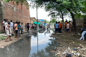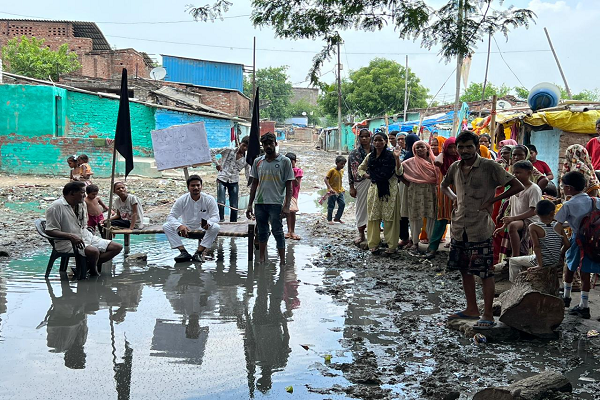 Kanpur News : जाजमऊ में गंदे पानी में बैठकर प्रदर्शन, सड़क बनाने की मांग