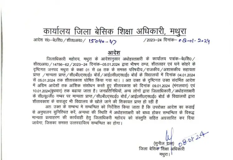 Mathura: कड़ाके की ठंड के चलते मथुरा डीएम का आदेश, अभी दो दिन और बंद रहेंगे सभी स्कूल; जानें कब खुलेंगे