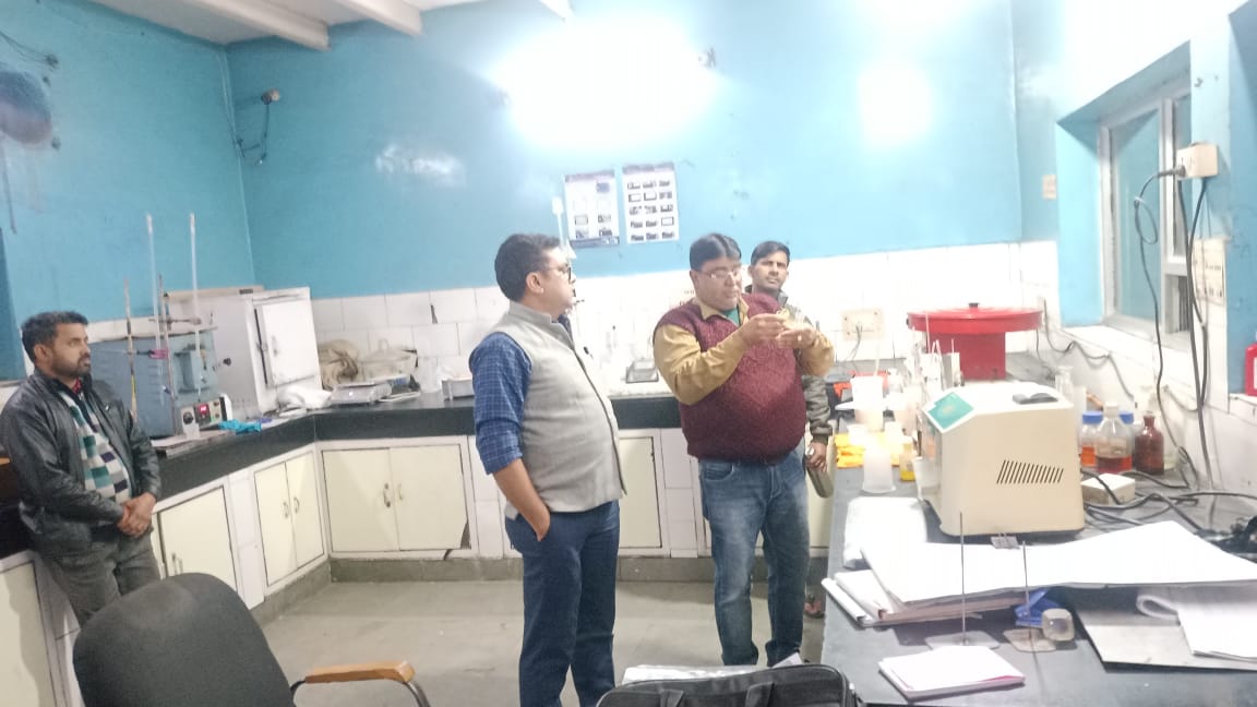 फोटो परिचय-इंडस्ट्री के लैब में ही दूध के सैंपल की जांच करती खाद्य सुरक्षा विभाग की टीम।
