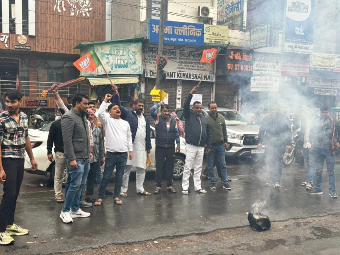 Mathura News: भाजपा की प्रचंड जीत पर की आतिशबाजी और बांटी मिठाई