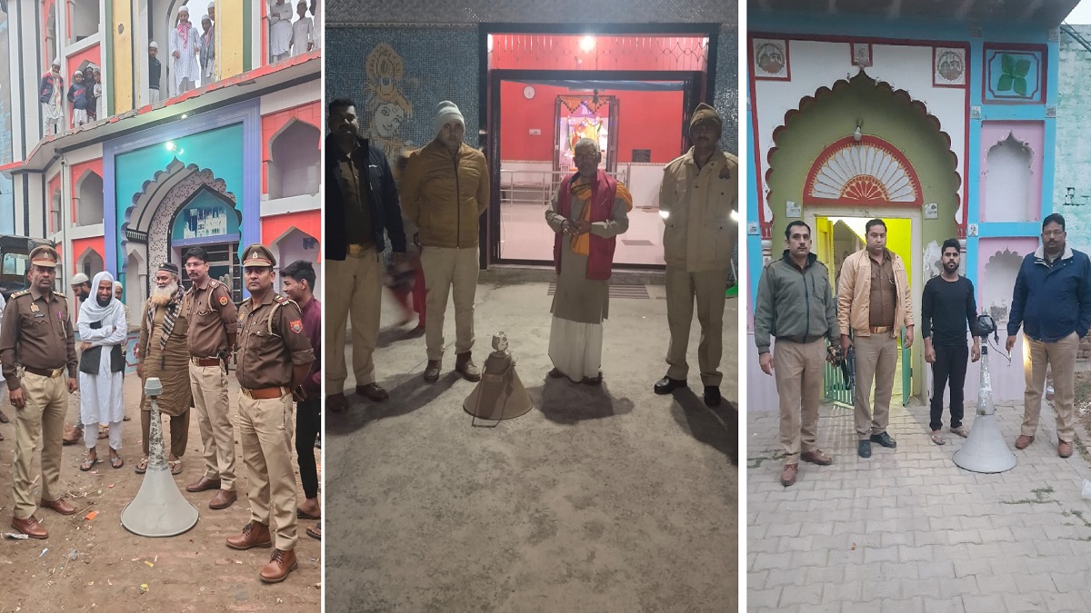 Mathura के धार्मिक स्थलों से पुलिस ने उतरवाए 59 लाउडस्पीकर, 81 की आवाज भी कराई कम