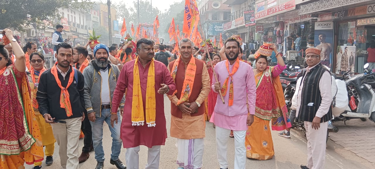 पुनः दीनदयाल नगर शिशु मंदिर पर ही विसर्जित हुई। अक्षत पूलित कलश रथ यात्रा में प्रमुख रूप से विभाग प्रचारक अरुण कुमार, डॉ संजय, शिवकुमार, आर्येंद्र, प्रदीप गोस्वामी, राजू यादव, अमित जैन, गौकुलेश गौतम, हरवीर सिंह चाहर, छाया गौतम, संजय हरियाणा, महापौर विनोद अग्रवाल, विधायक श्रीकांत शर्मा, विधायक मेघश्याम सिंह, मीडिया प्रमुख मुकेश शर्मा, योगेश आवा, ब्रजेंद्र नागर, दिनेश शर्मा, सविता , ललिता , अनीता, कविता, प्रतिभा , रामदास सहित हजारों की संख्या में राम भक्त सहभागी हुए। श्री राम पूजित अक्षत कलश रथ यात्रा का संचालन एवं संयोजन महानगर संयोजक विजय बंटा सर्राफ ने किया।