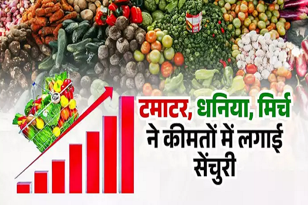 बाजार में लाल टमाटर 100 रुपये प्रति किलो बिक रहे हैं। इसके साथ साथ धनिया और मिर्च भी 200 से 300 रुपए किलो बिक रहे हैं। वहीं दूसरी ओर आलू और प्याज की कीमतें 40 और 50 रुपए प्रति किलो हो गई हैं।