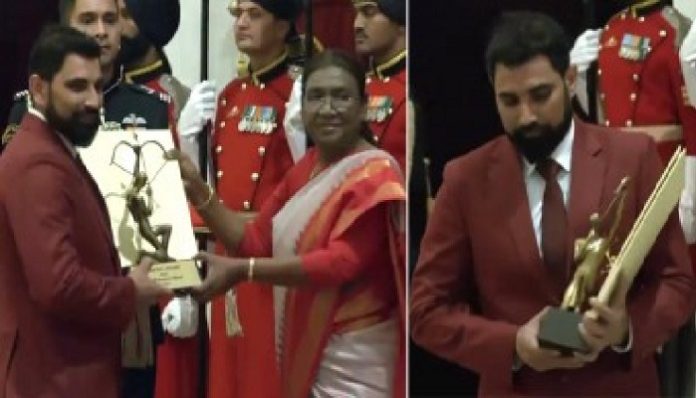 #WATCH | Delhi: Mohammed Shami received the Arjuna Award from President Droupadi Murmu at the National Sports Awards. pic.twitter.com/znIqdjf0qS