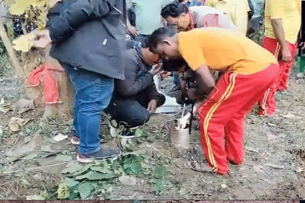बच्चे के रोने की आवाज सुनकर पहुंचे लोग,स्थानीय निवासियों को रोने की आवाज सुनकर बोरवेल के अंदर शिशु की उपस्थिति के बारे में पता चला।