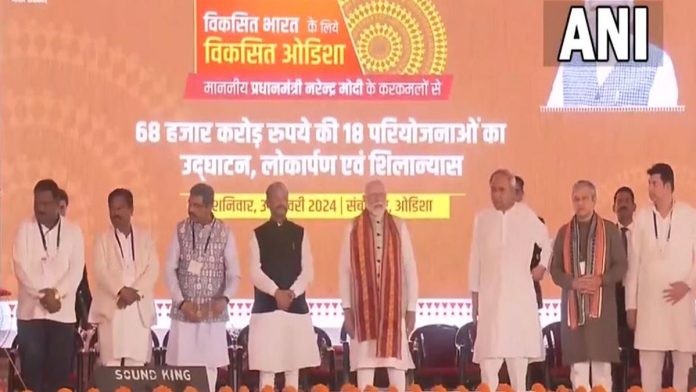 #WATCH | Odisha: Prime Minister Narendra Modi inaugurates and lays the foundation stone of 18 projects worth Rs 68,000 crores, in Sambalpur. pic.twitter.com/QNU4kfOqJD