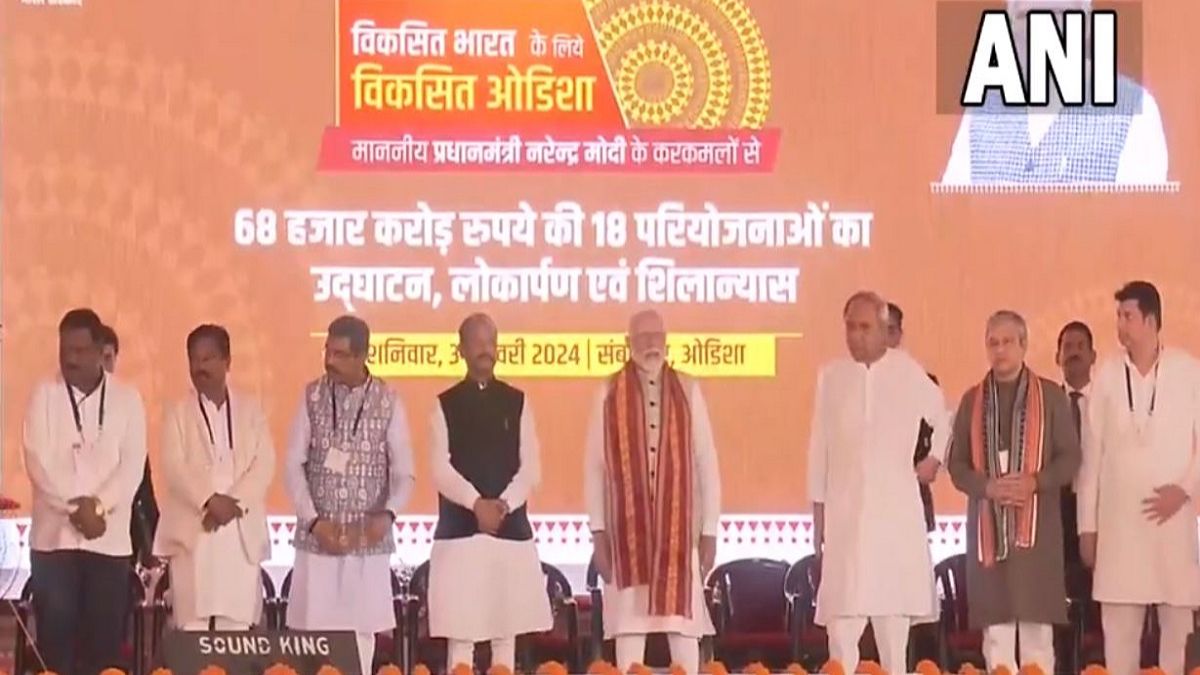 #WATCH | Odisha: Prime Minister Narendra Modi inaugurates and lays the foundation stone of 18 projects worth Rs 68,000 crores, in Sambalpur. pic.twitter.com/QNU4kfOqJD