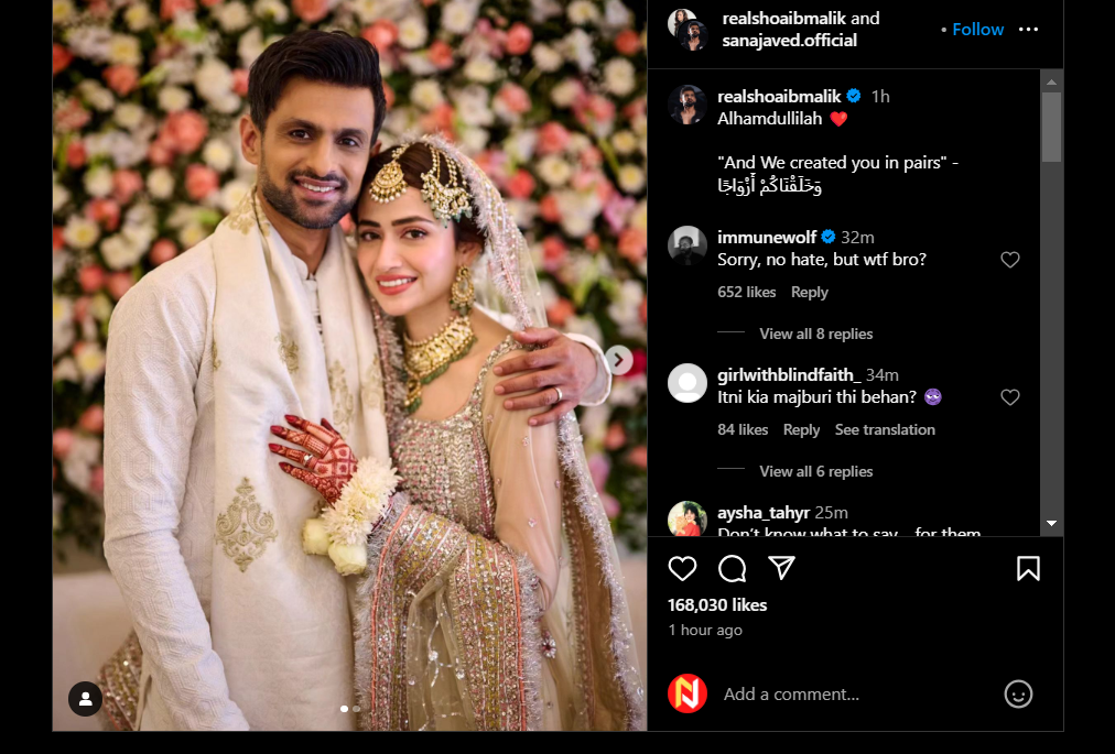 शोएब ने खुद इसकी जानकारी सोशल मीडिया पर पाकिस्तानी अभिनेत्री सना जावेद से निकाह की पुष्टि की। यह घटना ऐसे समय में हुई है, जब शोएब और सानिया के बीच तलाक की खबरें सामने आ रही थीं।