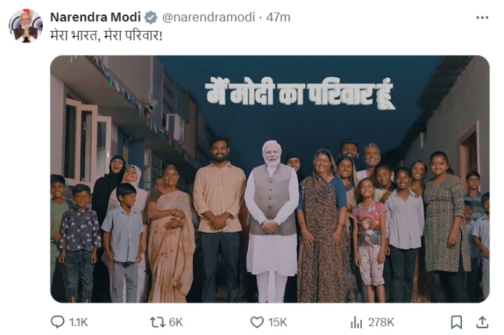 पीएम मोदी ने इससे जुड़ा एक वीडियो सोशल मीडिया प्लेटफॉर्म एक्स पर शेयर कर लिखा- ‘मेरा भारत, मेरा परिवार।’
