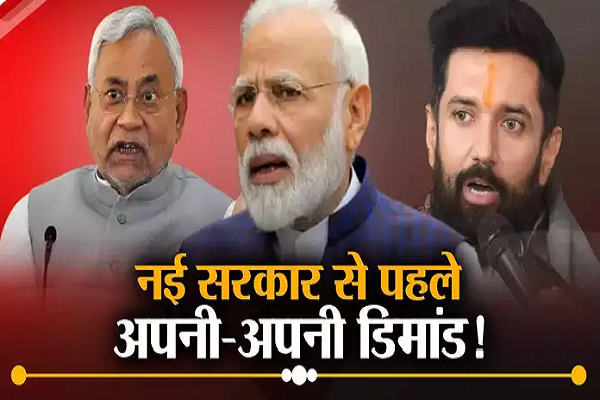जानकारी के मुताबिक, नीतीश कुमार की पार्टी जेडीयू ने 4 मंत्री पद मांगे हैं। वहीं चिराग पासवान ने दो, जीतनराम मांझी ने एक और टीडीपी ने भी चार मंत्रालय की मांग रख दी है। लोकसभा चुनाव में सत्तारूढ़ गठबंधन को बहुमत मिलने और प्रधानमंत्री मोदी के तीसरे कार्यकाल की चर्चा को लेकर सियासी गहमागहमी तेज हो गई।