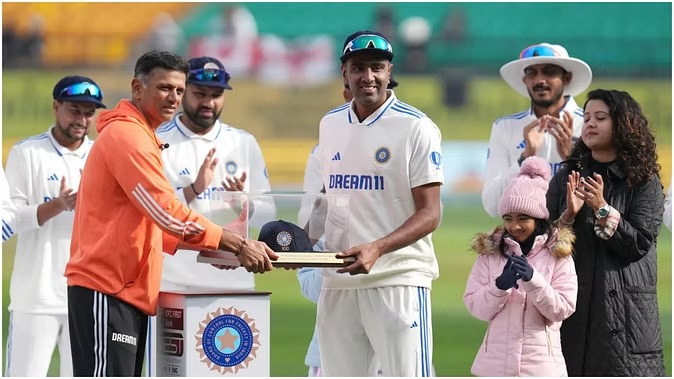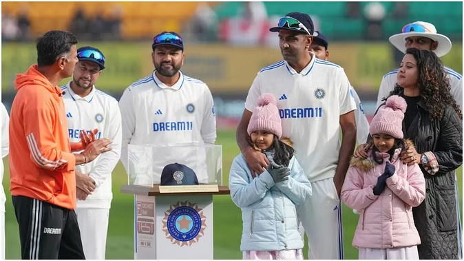 इस खास मौके के लिए अश्विन की पत्नी प्रीति और उनकी दोनों बेटियां भी स्टेडियम में मौजूद रहे। हेड कोच राहुल द्रविड़ ने अश्विन को लेकर कुछ शब्द बोले। फिर उन्होंने अश्विन को टेस्ट कैप सौंपी। इस दौरान भारतीय खिलाड़ी ताली बजाते रहे। प्रीति भावुक नजर आईं। सभी खिलाड़ियों ने गले मिलकर अश्विन को बधाई दी। भारतीय खिलाड़ियों ने उन्हें गार्ड ऑफ ऑनर भी दिया। बीसीसीआई ने कई तस्वीरें भी साझा की हैं।