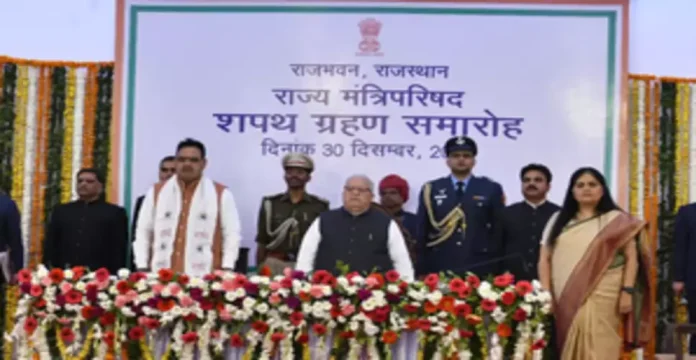 आखिरकार राजस्थान में बीजेपी की नई भजनलाल सरकार के मंत्रिमंडल का विस्तार कर दिया गया है। शनिवार को राजधानी जयपुर में राजभवन में हुए शपथ ग्रहण समारोह में राज्यपाल कलराज मिश्र ने 22 मंत्रियों को शपथ दिलाई।