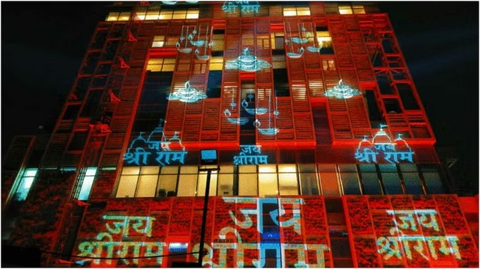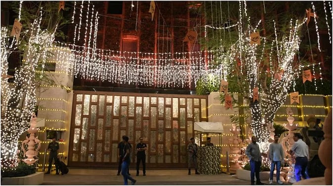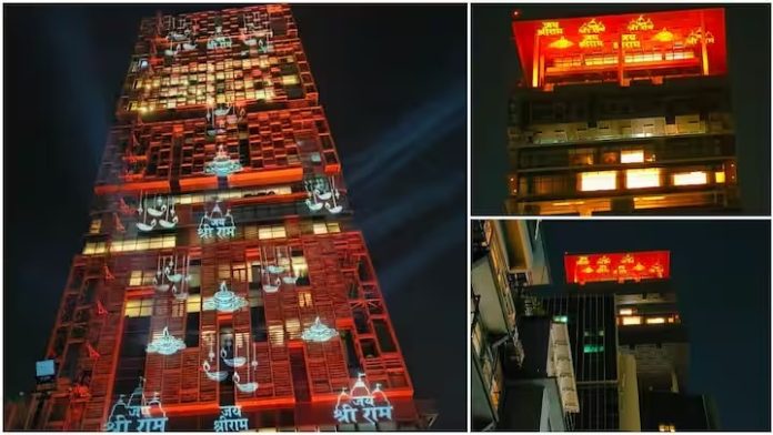 दरअसल, समारोह की पूर्व संध्या पर अंबानी का मुंबई आवास ‘जय श्री राम’ की कलाकृतियों से जगमगा उठा है। सबसे महंगे घर एंटीलिया का एक वीडियो सामने आया है, जिसमें देखा जा सकता मुकेश अंबानी का घर भगवा रंग में रंगा नजर आ रहा है। साथ ही जलते दीपों की छवि नजर आ रही हैं। इसके अलावा, पूरे घर पर ‘जय श्री राम’ लिखा दिख रहा है। तस्वीरों के देखने के बाद हर कोई मंत्रमुग्ध हो रहा है।