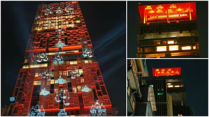 27 मंजिला इमारत एंटीलिया में लगाई गई लाइटों की खास बात है कि इनसे ‘जय श्री राम’ की आवाजें आ रही हैं। इतना ही नहीं, उनके घर की इन तस्वीरों के वायरल होने के बाद राम भक्त भी उनके इस कदम और भक्ति से काफी प्रभावित नजर आ रहे हैं।मुकेश अंबानी के इस कदम की खूब प्रशंसा कर रहे हैं।