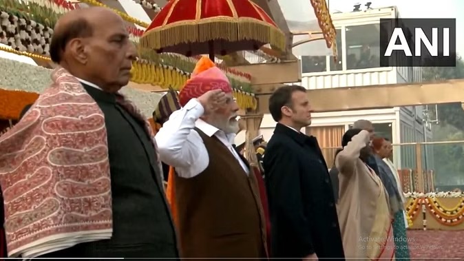 न्यूज़लिंक हिंदी, दिल्ली। गणतंत्र दिवस परेड का भव्य आयोजन शुरू हो गया है। बता दे कि इससे पहले राष्ट्रपति मुर्मू ने कर्तव्य पथ पर तिरंगा फहराया। इसके बाद ही 21 तोपों की सलामी दी गई। मुख्य अतिथि फ्रांस के राष्ट्रपति इमैनुएल मैक्रों भी कर्तव्य पथ पर मौजूद हुए।