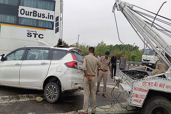 और फिर युवक और युवती को लेकर अमेठी लौट रहे थे। एक्सप्रेसवे पर बांगरमऊ स्थित टोल प्लाजा के पास सुबह साढ़े पांच बजे टोल प्लाजा के पास एक स्लीपर बस के चालक ने अचानक ब्रेक लग दी।