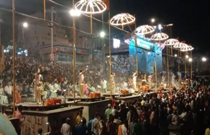 दशाश्वमेध घाट पर होने वाली गंगा आरती में शामिल होने के लिए दोपहर बाद से ही श्रद्धालु पहुंचने लगे थे। चार बजे तक तो घाट पर पैर रखने की जगह नहीं बची थी। आरती शुरू होने के बाद तो गंगा की लहरों पर भी नावों का जाम लग गया।