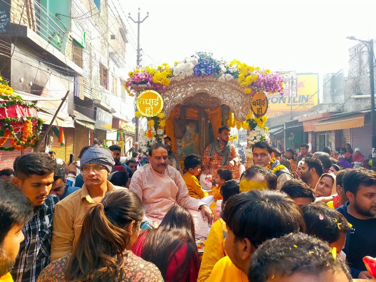 सम्पूर्ण श्री निधिवनराज को देशी विदेशी पुष्पो के अलावा रंगबिरंगे गुब्बारो से सजाया गया था। रसिक अनन्य नृपति स्वामी हरिदास अपने लाड़ले ठाकुर बांके बिहारी लाल को चांदी के रथ में विराजमान होकर बधाई देने पँहुँचे। श्रीनिधिवनराज से प्रारंभ हुई शोभायात्रा नगर के प्रमुख मार्गों से होती हुई बाँके बिहारी मंदिर पहुंची।